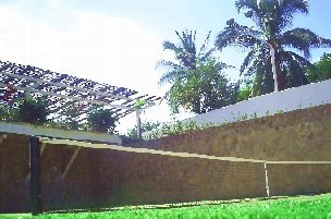 Sol's Villas lighted grass tennis court, located inside the resort. Tennis equipment for